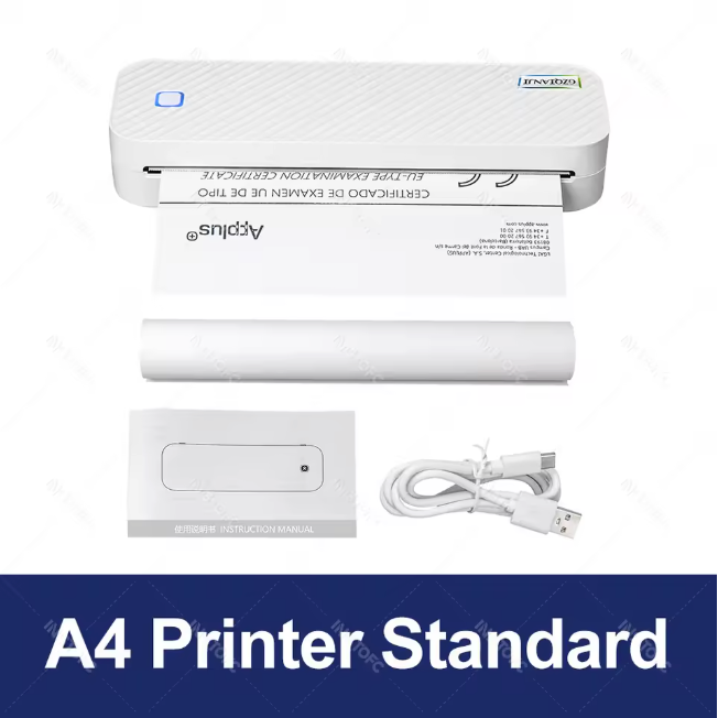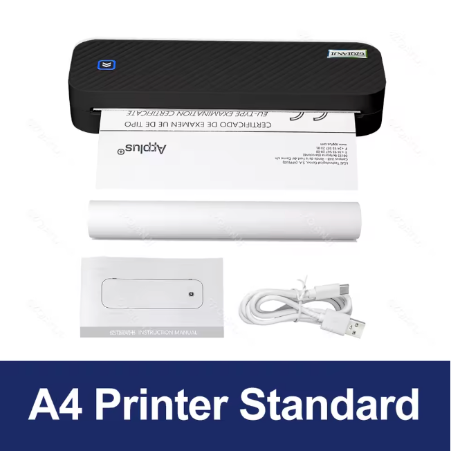 Lleva la impresión a cualquier lugar con esta impresora térmica portátil A4, ideal para el hogar, la oficina, la escuela o incluso en viajes. Compacta y ligera, permite imprimir fotos, documentos PDF y otros archivos de manera rápida y eficiente, utilizando papel en rollo o plegado.